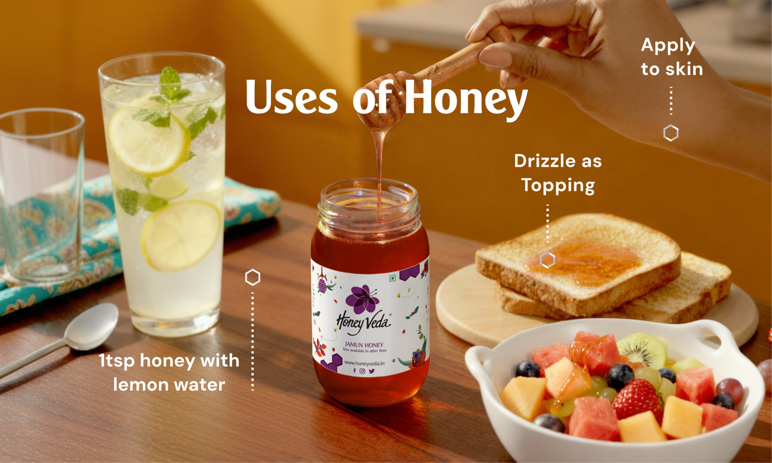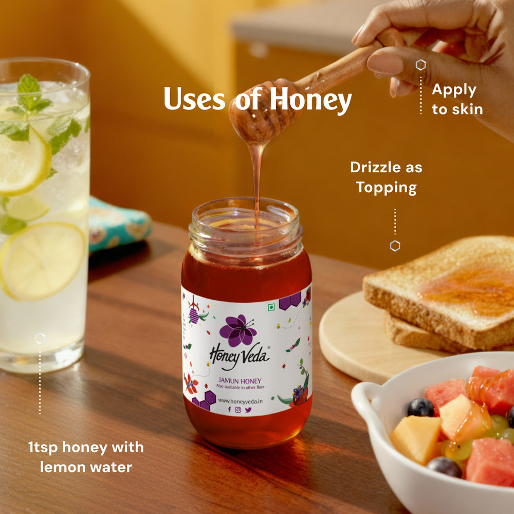 Jamun honey is abundant in antioxidants and antimicrobial properties , has a lower glycemic index, aids in digestion and can help soothe stomach discomfort and Regular consumption of Jamun honey can enhance the body's immune system.