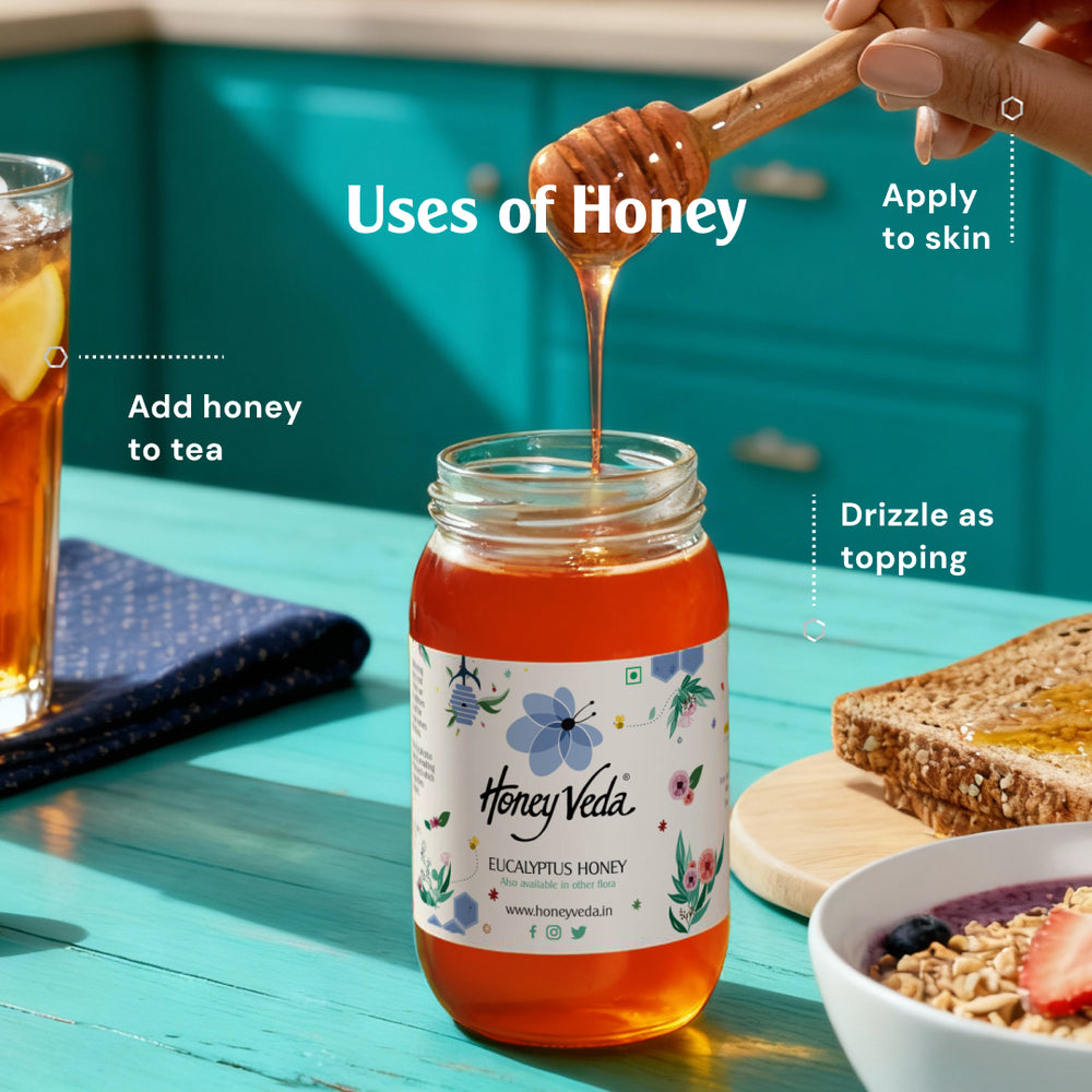 So shoo away your common cold with a dose of the Eucalyptus honey as it inherits its decongestant and expectorant nature from the Eucalyptus. Possessing germicidal properties, it can be used as an antiseptic in many ways.