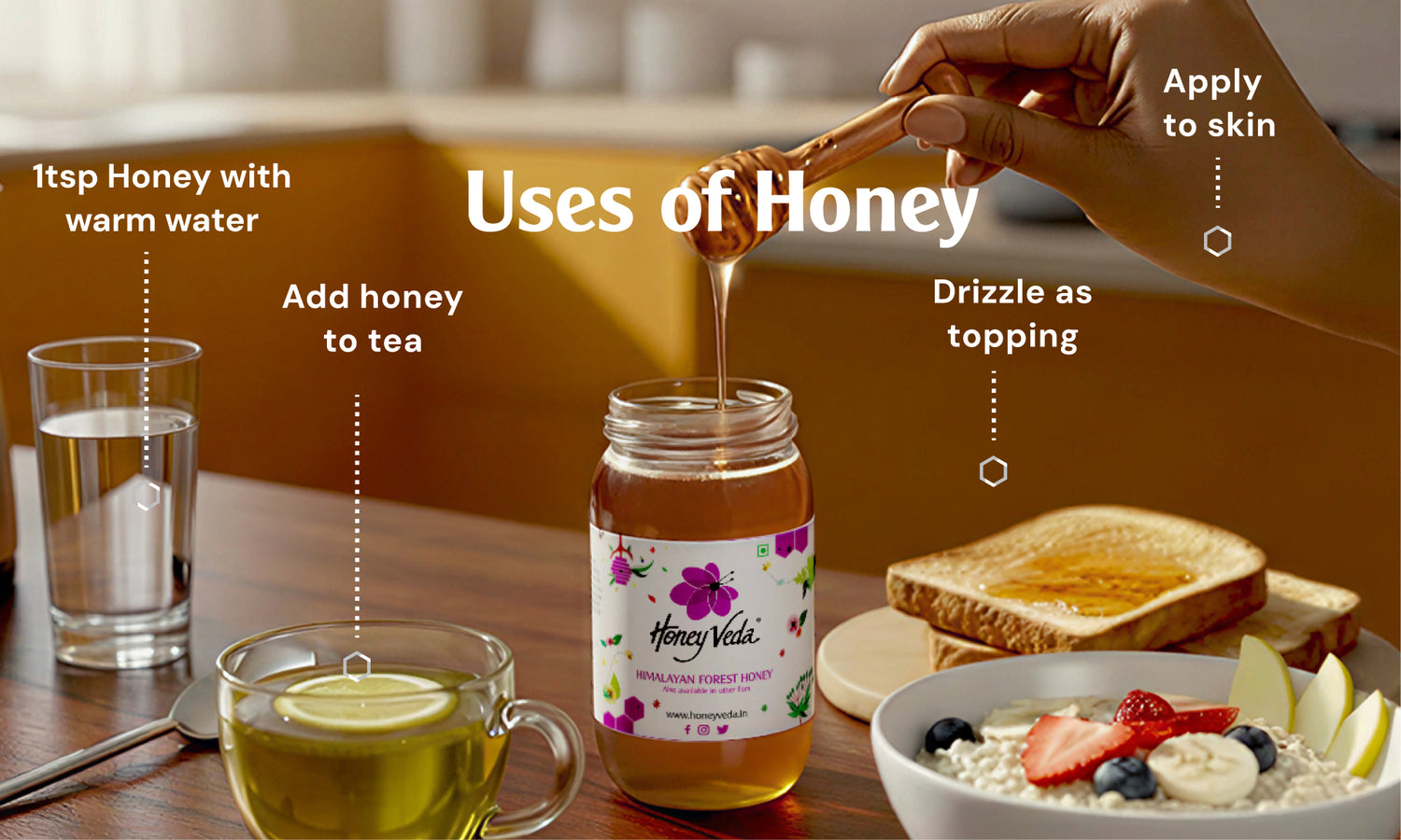Enjoy this 100% raw, natural, pure, and unprocessed honey with sweets, breakfast, or just with water!"