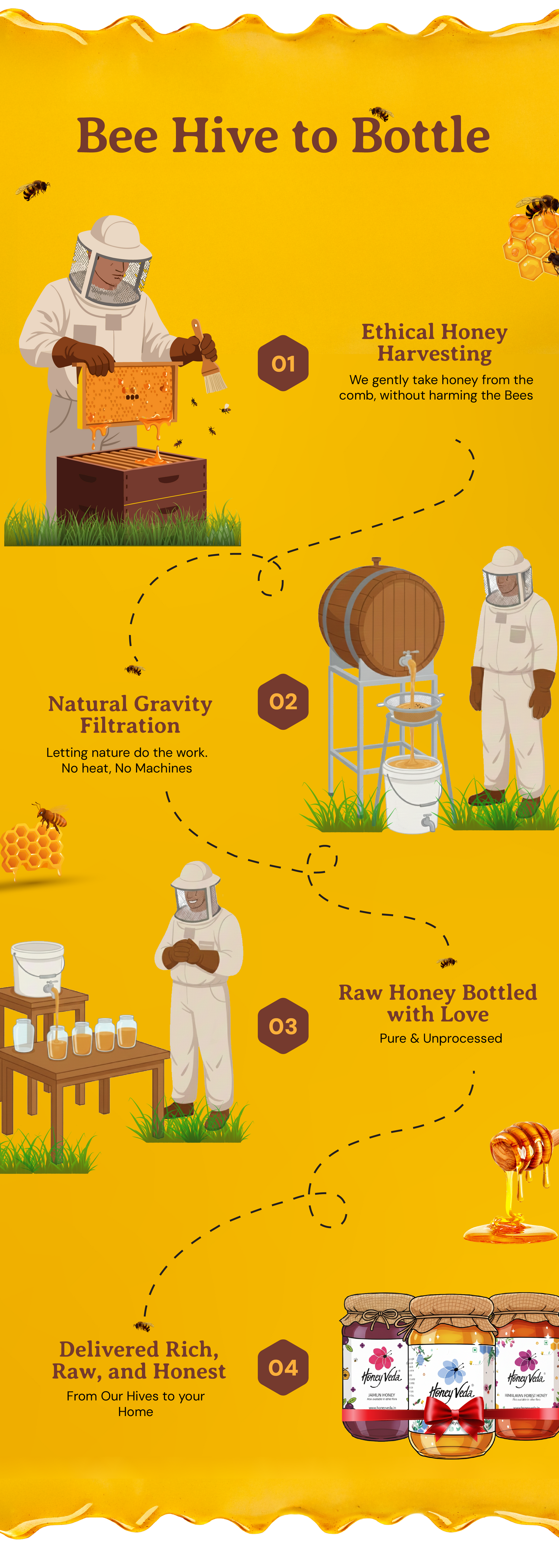 At HoneyVeda, you don’t just taste raw, unprocessed honey. You taste a system of trust and the kindness it was made with.