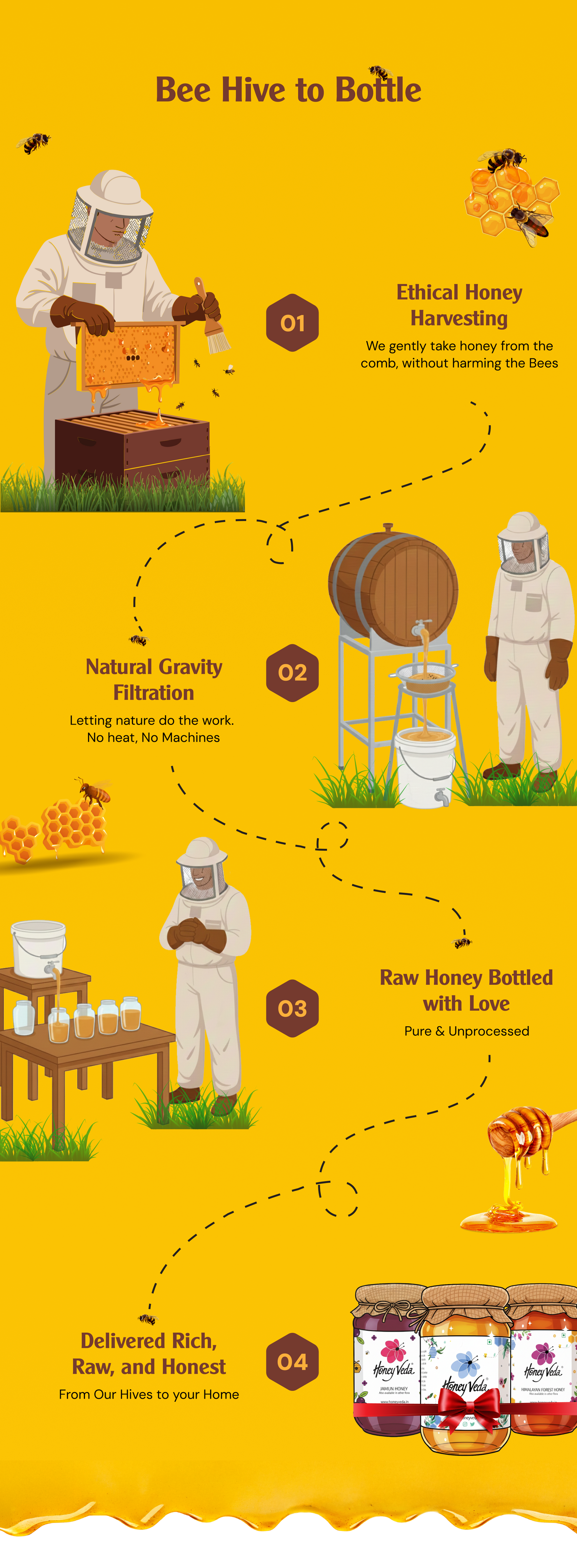At HoneyVeda, you don’t just taste raw, unprocessed honey. You taste a system of trust and the kindness it was made with.